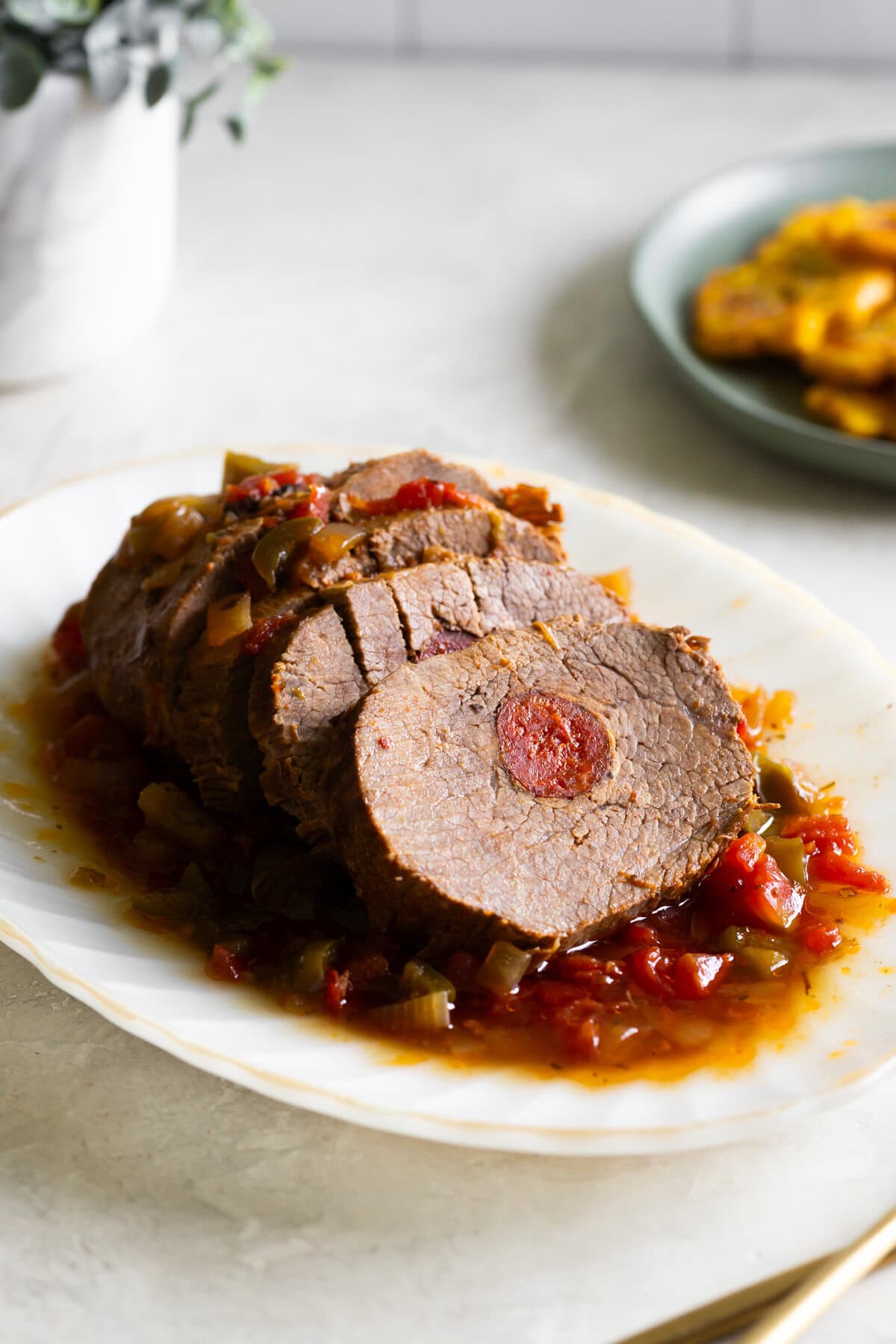 Every Cuban family has their “special occasion” dish, and for mine, it’s chorizo-stuffed boliche (or boliche mechado). I guess you could say it holds the same Sunday spot as cozy arroz con pollo, that comforting classic we all grew up with.